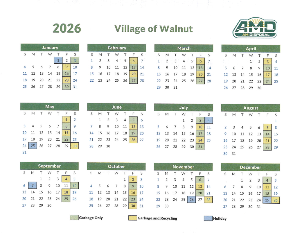 The 2026 Garbage and Recycling Calendar has been released. You can download the calendar here.